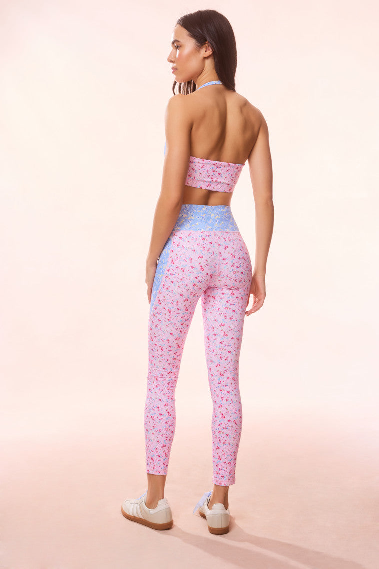 On the move in the Highland Legging. Comfort meets style with these versatile, lightweight high-waisted leggings. These must-have active pants feature our ditsy floral mixed print, a smocked waistband for a seamless performance. Perfect for any high or low impact movement: from interval training to yoga to running errands on the go. Pair with our Dierdra Bra for the complete look.