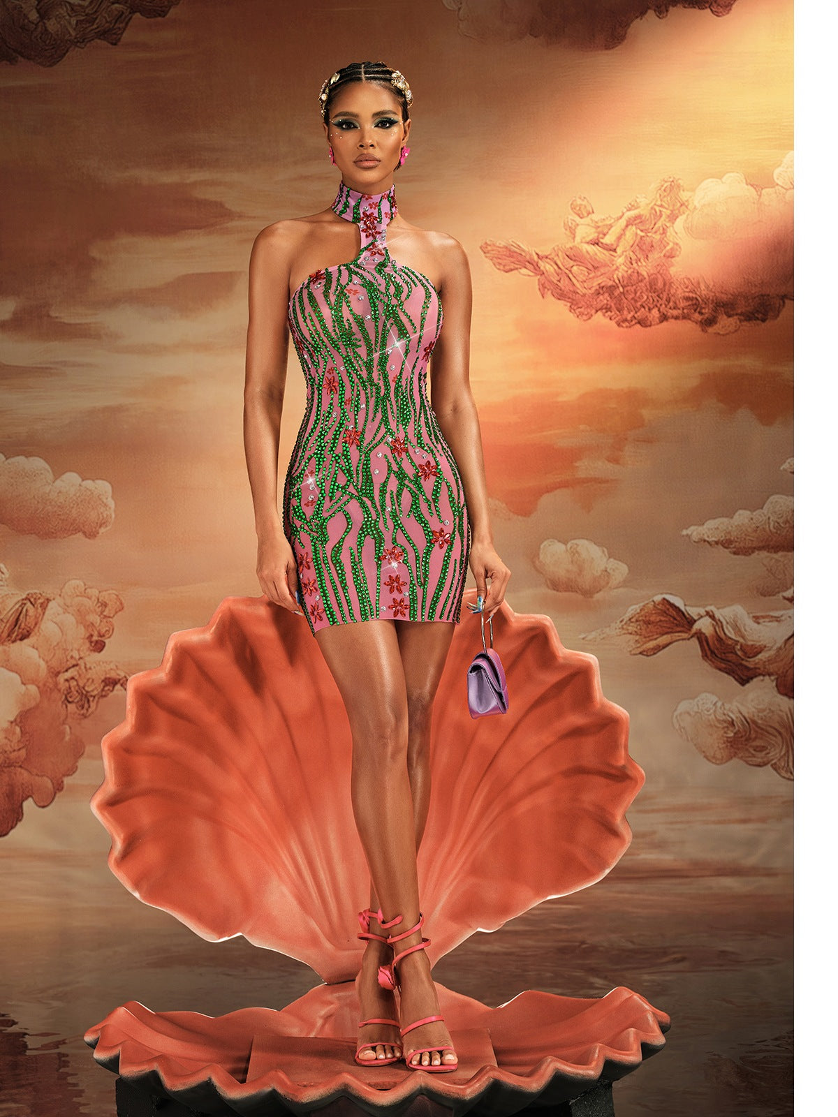 Elevate your style with our Jannik Halterneck Embellished Mesh Mini Dress! This stunning dress features a halterneck design and embellished mesh material for a unique and elegant look. Perfect for special occasions, this dress is sure to make you stand out and feel confident. Don't miss out on this must-have wardrobe piece!