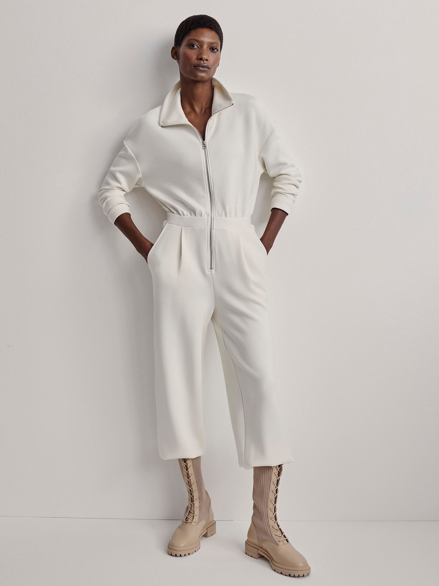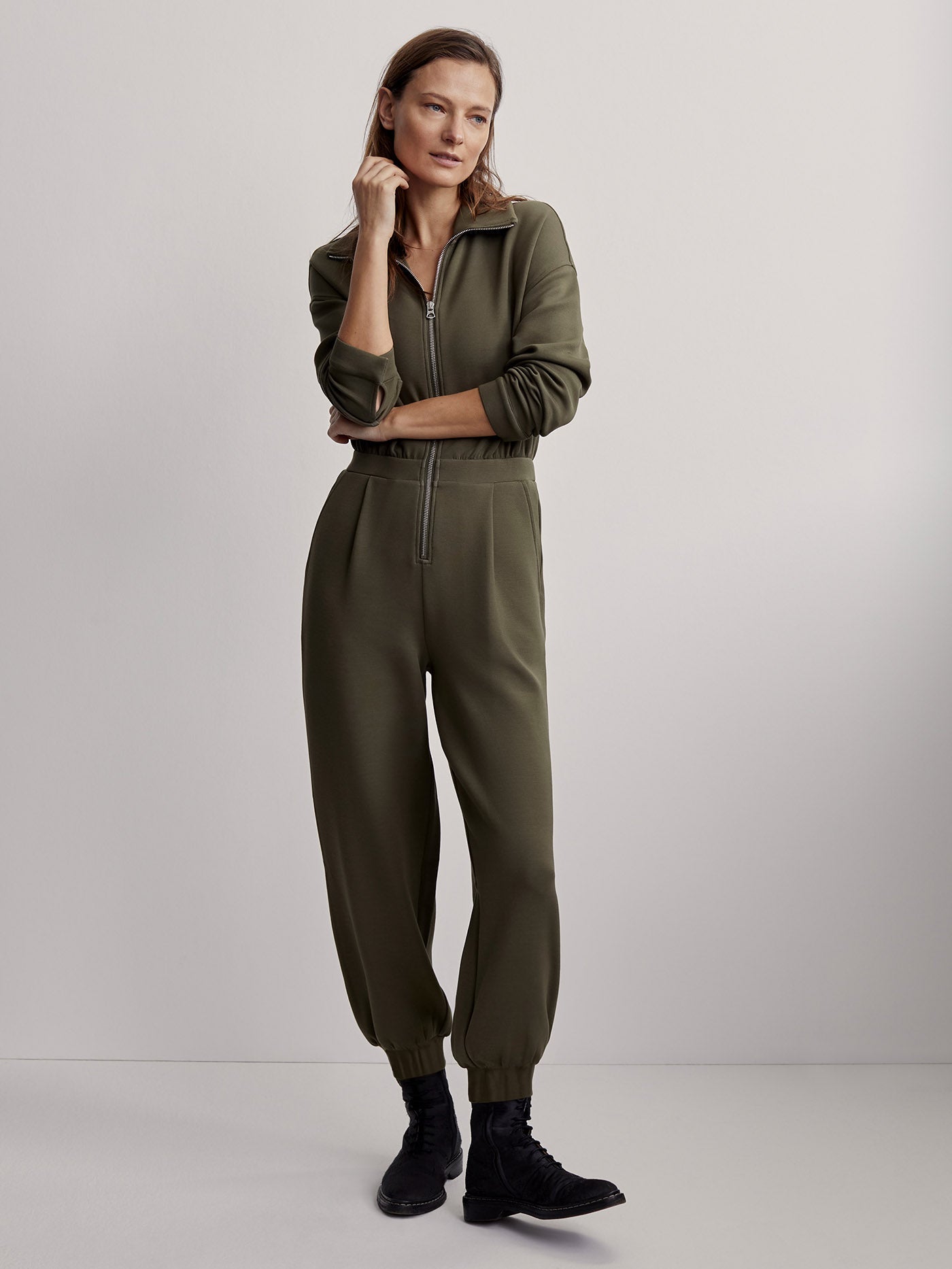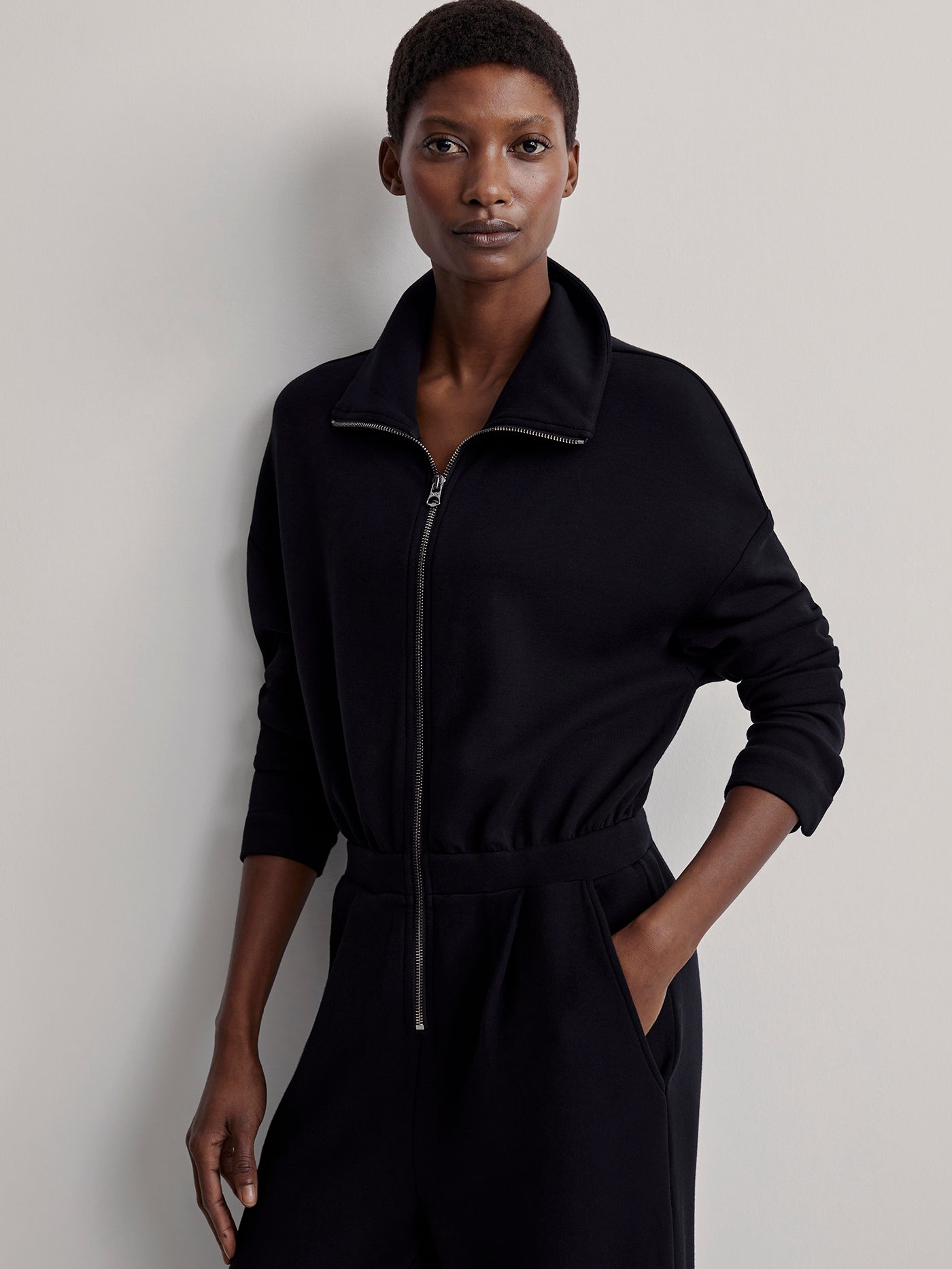 Made in our signature DoubleSoft® fabric, the Jessie jumpsuit has a relaxed fit with a front zip opening that can be worn up or down. Complete with dropped shoulders and popper fastenings at the cuffs, this all-in-one is the perfect instant outfit.