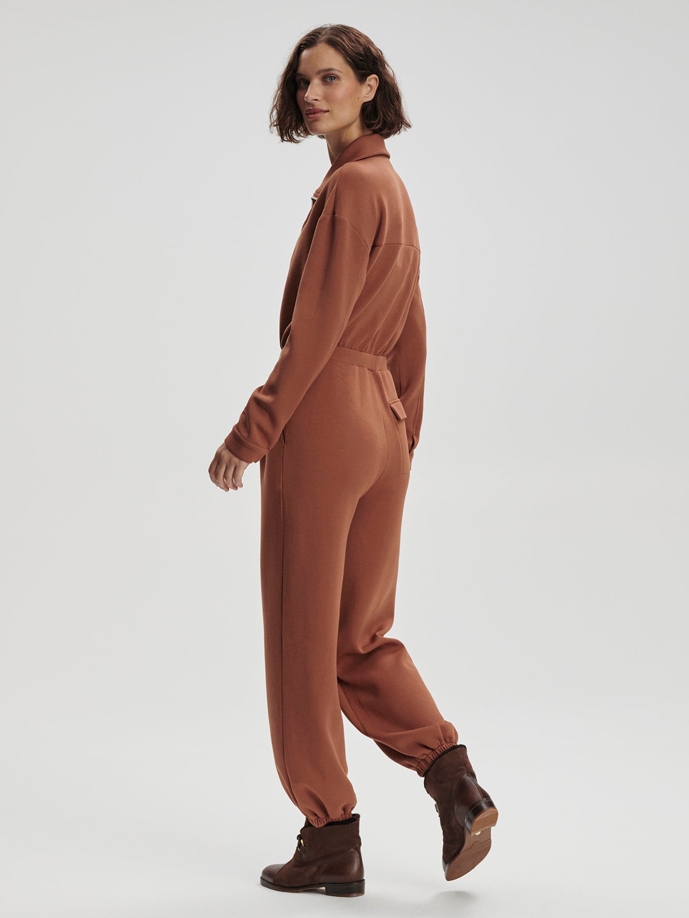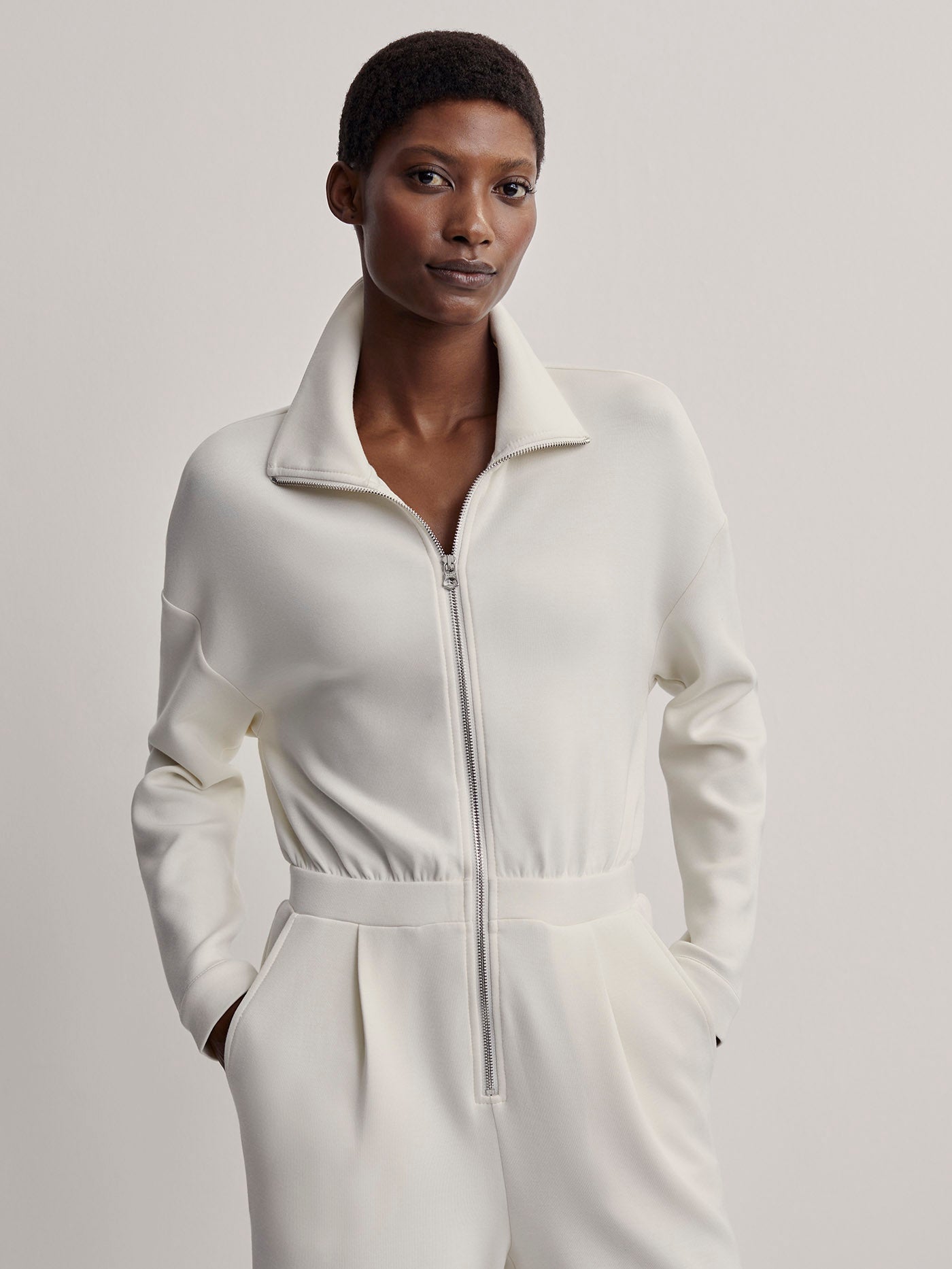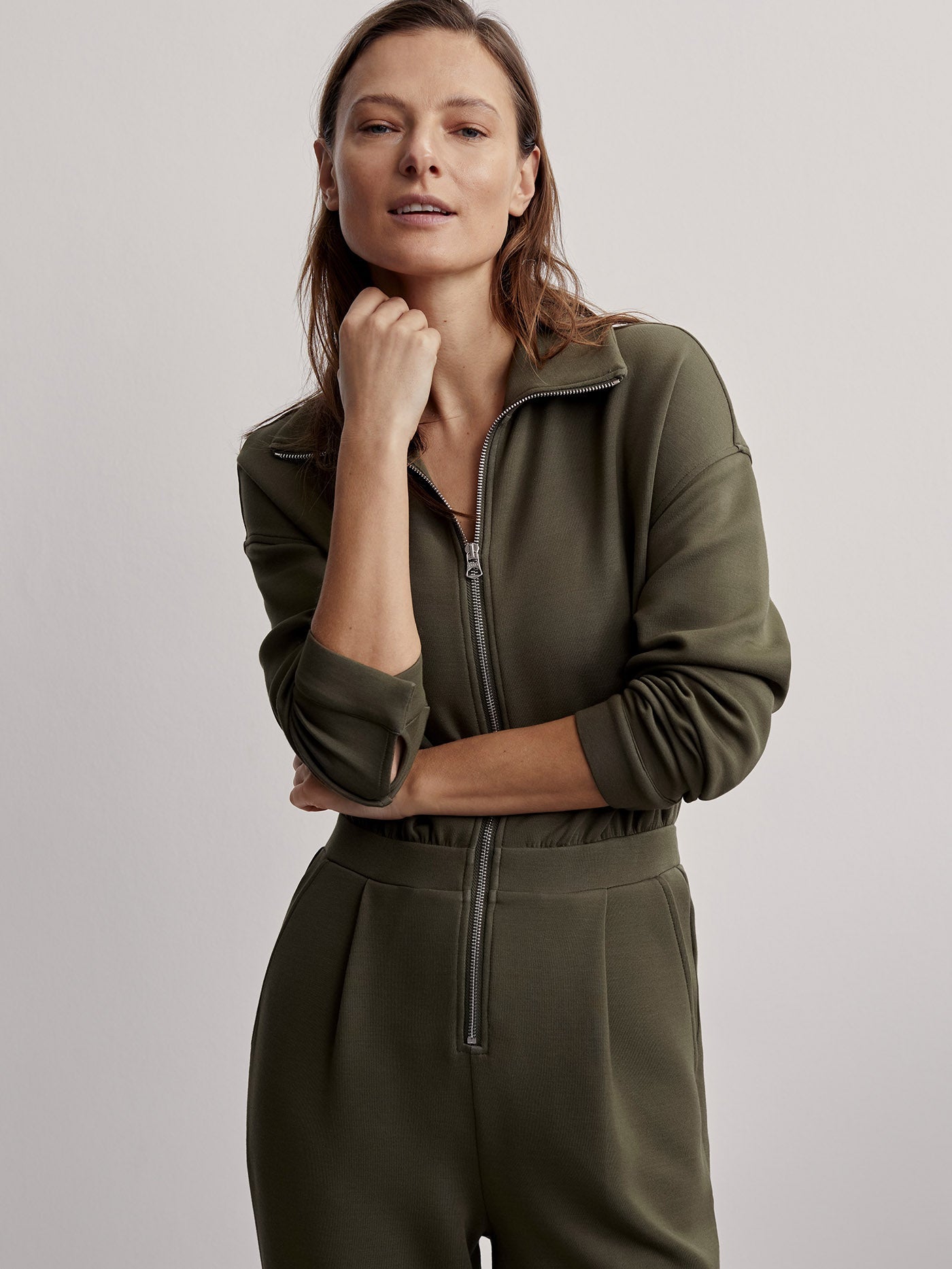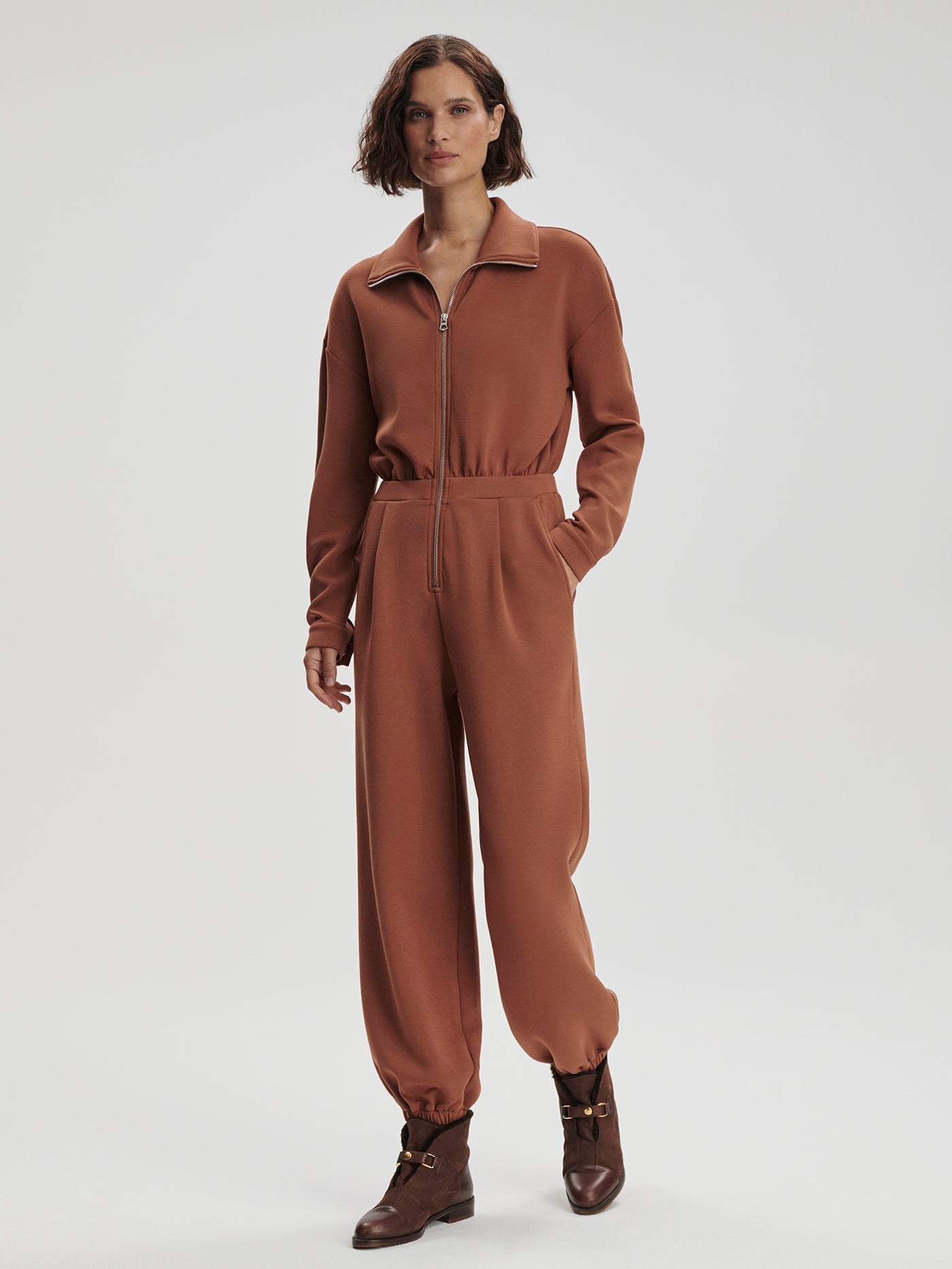 Made in our signature DoubleSoft® fabric, the Jessie jumpsuit has a relaxed fit with a front zip opening that can be worn up or down. Complete with dropped shoulders and popper fastenings at the cuffs, this all-in-one is the perfect instant outfit.