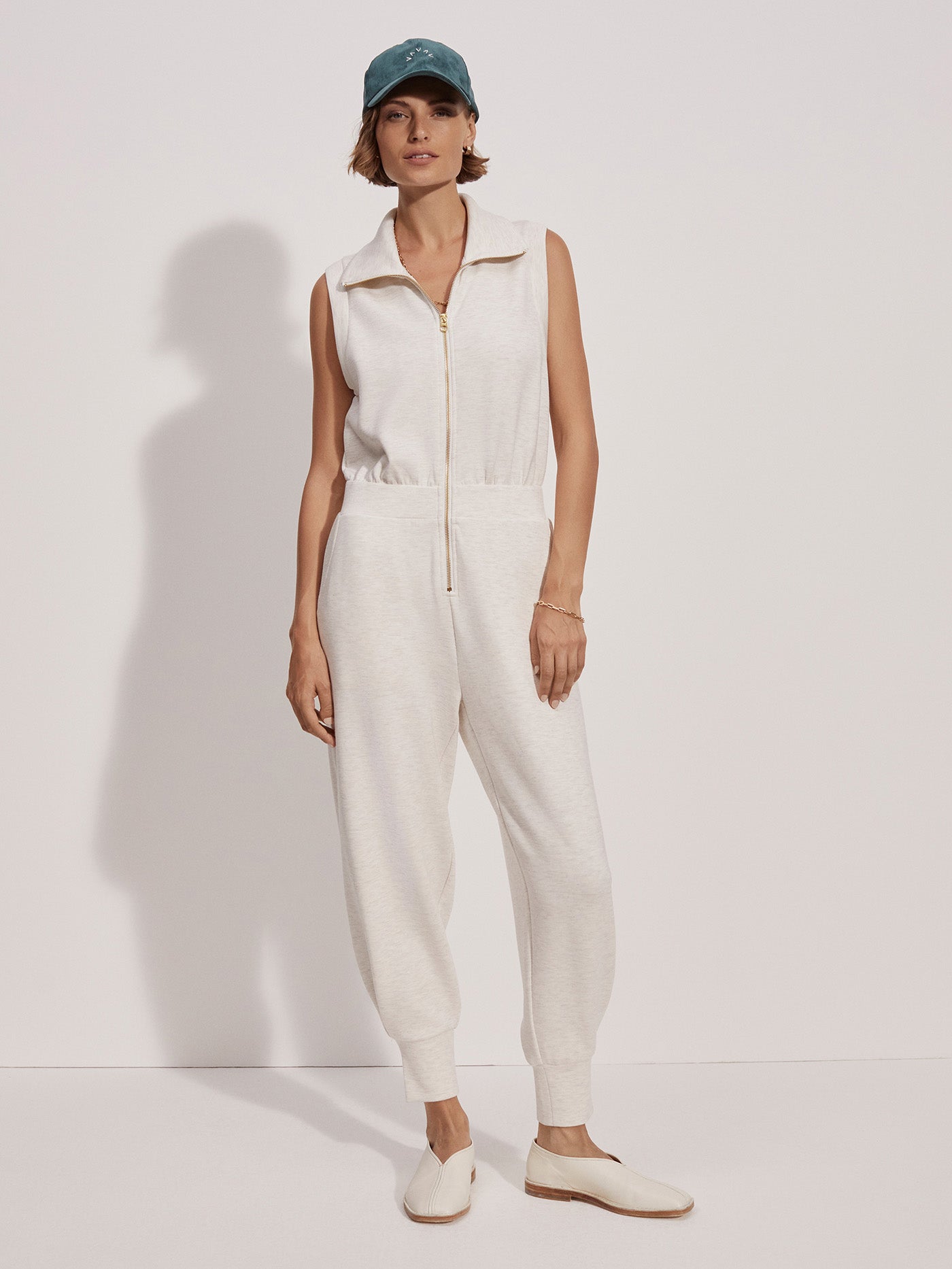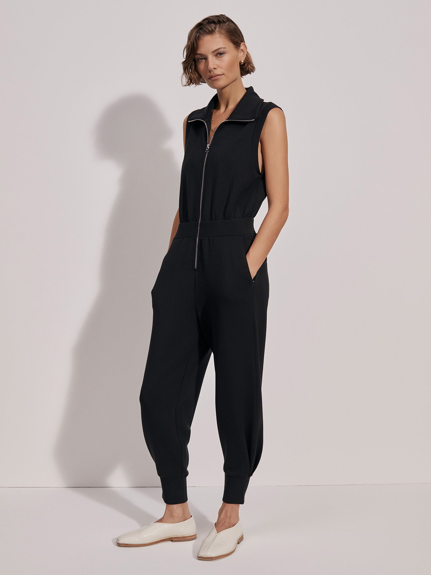 This sleeveless jumpsuit features a zip-front design with a high neck and relaxed pants. Made from our signature DoubleSoft™ fabric, it's your go-to for lounging or stepping out in effortless style.