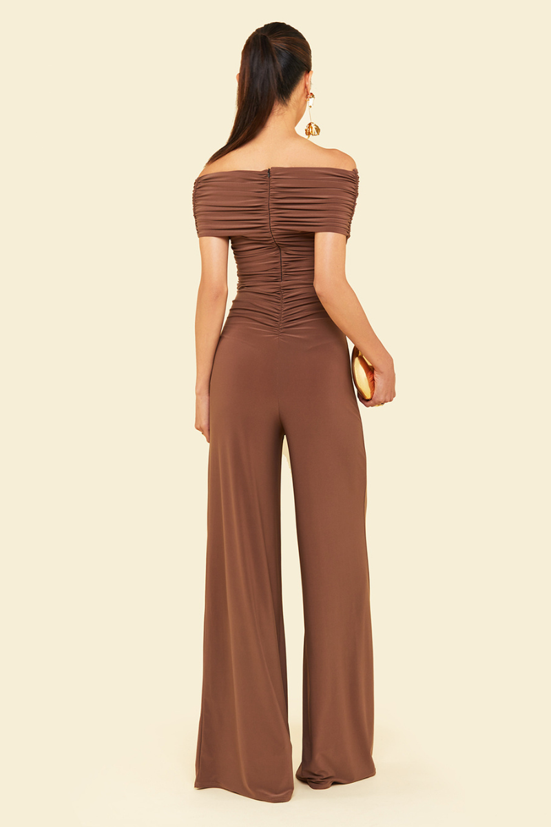 The Muscari Jumpsuit, our alluring, signature ruched wrapover detail bodice and elegant wide leg trouser creates the perfect one-piece evening look.