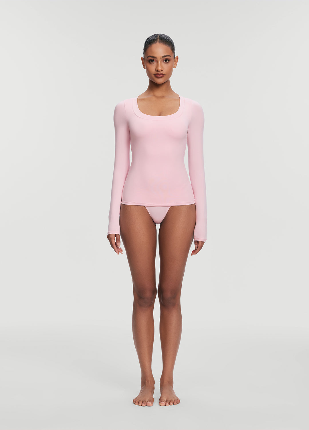 The kind of top you can wear anywhere. With a deep U-neck that flatters, silky-soft fabric that feels like second skin, and a sculpted fit that works with everything, this long sleeve proves basics can be anything but boring.
