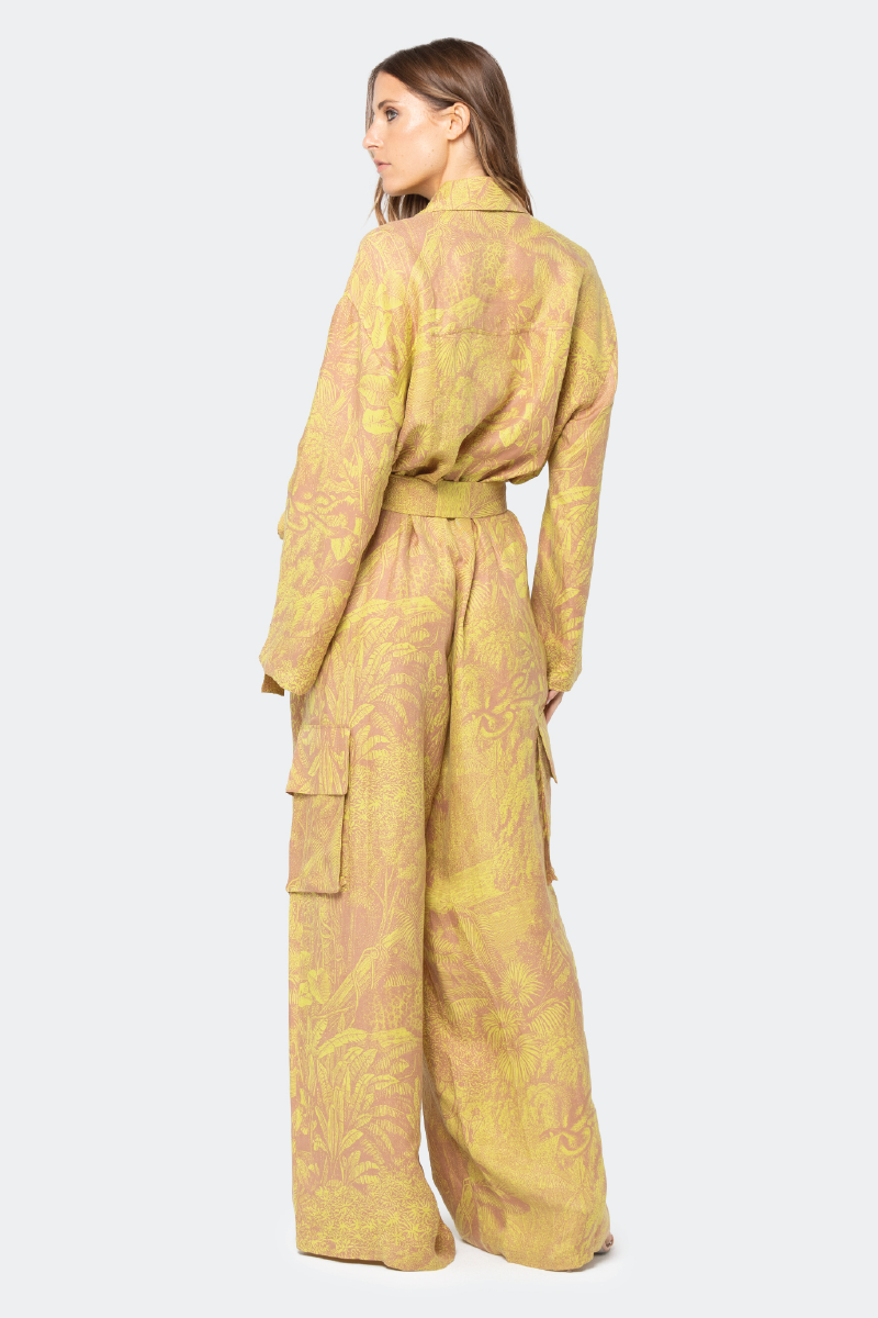 Effortlessly stylish and decadently oversized, this jumpsuit exudes luxury with its loose fit, large pockets, and detachable sash.