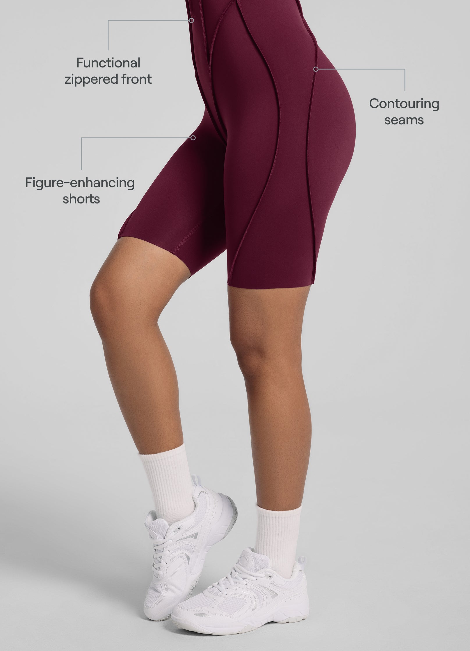 La Catsuit Sleek Shorts est plus qu'un vêtement, c'est un véritable accessoire du quotidien. Vous cherchez une tenue de sport qui puisse convenir pour un brunch ? Le tour est joué. Vous cherchez à être à l'aise et irrésistible ? Facile. Avec son look élégant et sa fermeture éclair sur le devant, cette combi est le vêtement polyvalent par excellence ; chic, confortable et portable à l'infini. Enfilez-la, portez-la fièrement et laissez fuser les compliments.