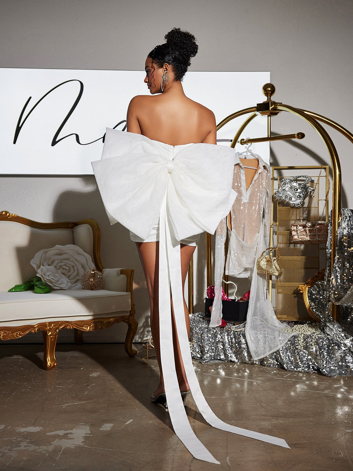 Experience effortless beauty in the Sophrona Strapless Flower Bow Mini Dress! With its stunning strapless design and feminine flower bow detail, this dress will make you feel confident and elegant at any event. Its lightweight and flowy fabric will keep you comfortable and cool, while its flattering silhouette will accentuate your figure. Make a statement with this must-have dress!